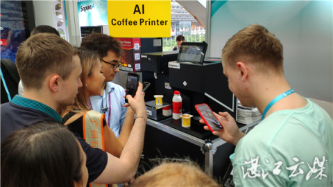 “看!我上傳了自己的照片后,才幾秒鐘的時(shí)間,咖啡拉花就做好了,非常逼真,很好玩。”一位外國(guó)友人現(xiàn)場(chǎng)按照工作人員指引,現(xiàn)場(chǎng)操作了一番,馬上端出了一杯印著自己頭像的咖啡,引得周?chē)挠讶撕涂蜕碳娂婞c(diǎn)贊、拍照。
