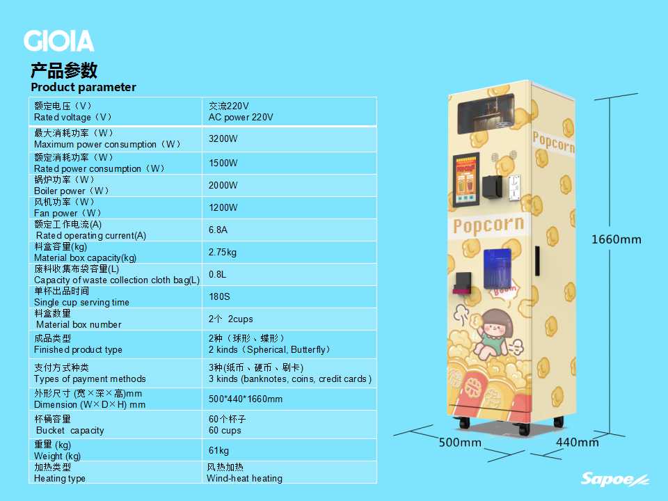 立式自動售賣爆米花機