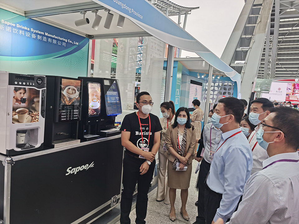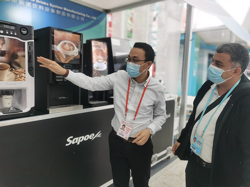 2021.10.15--19 October, zhanjiang Xinnuo Beverage Equipment Co. , Ltd. participated in the “Zhanjiang small household appliances (kitchen electrical appliances) demonstration base for foreign trade transformation and upgrading” exhibition organized by the base workstation of the Chamber of Commerce of import and export of Zhanjiang at the 130th Canton Fair. This event will promote our fully automatic intelligent coffee machine and beverage vending machine to our customers on-site and online, and enhance our creativity, competitiveness and influence in the domestic and foreign markets.